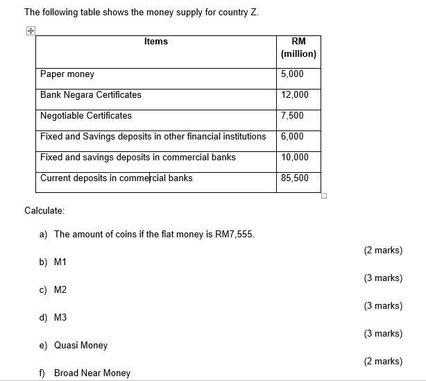 Solved The Following Table Shows The Money Supply For Chegg Com